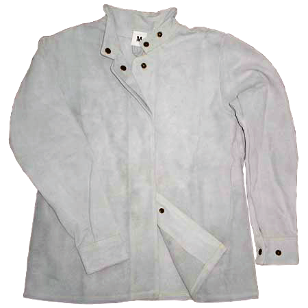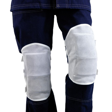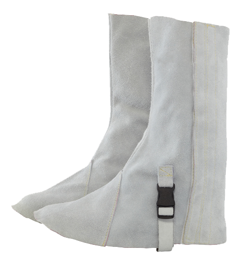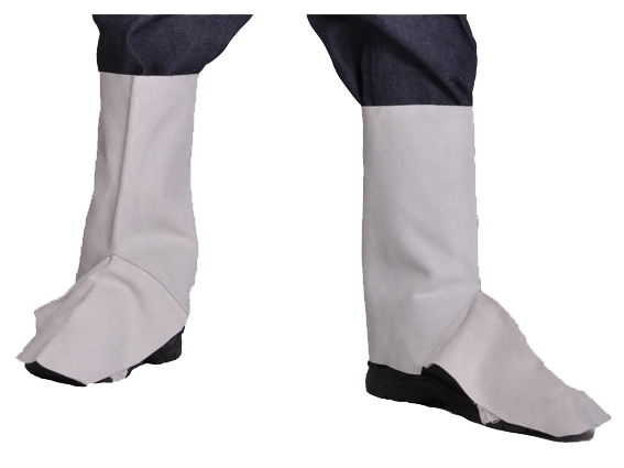 Natural split leather sleeves with internal elastic.