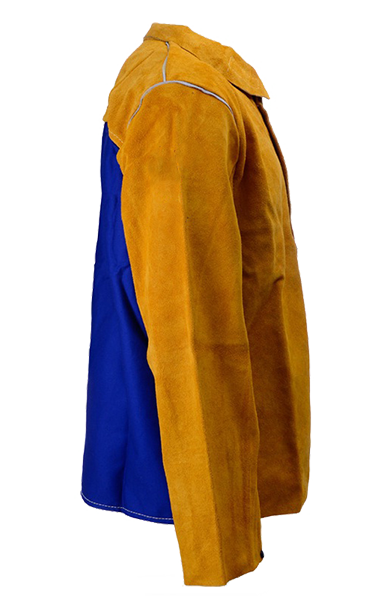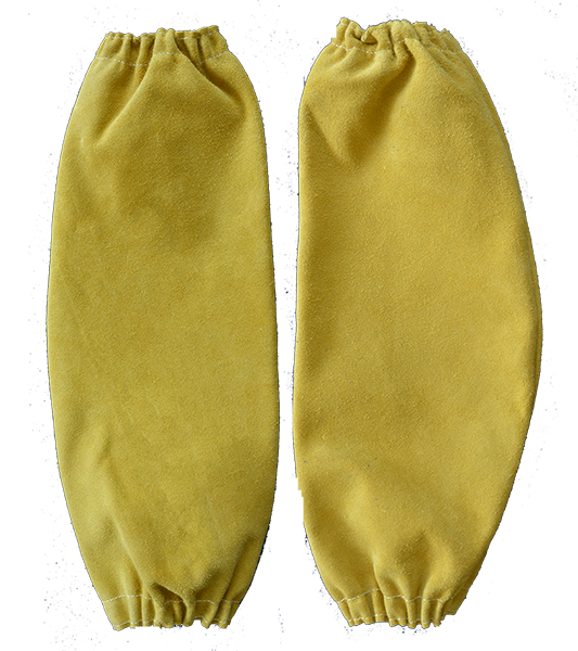 Yellow split leather sleeves with elastic.