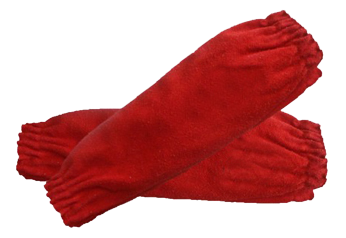 Red split leather sleeves with elastic.